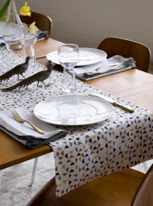 Mosaic, Gate and Woodblock Collection. Available in two colors: Lake and Java. A fresh take for the modern table, this geometric pattern mimics the intricate glass work of artisans. Made from linen and cotton with low impact dyes. $15.00 – $24.00